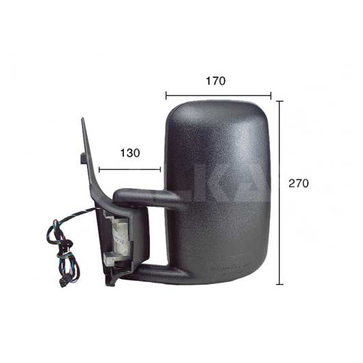 Einbauseite: links | Breite [mm]: 170 | Höhe [mm]: 270 | Betriebsart: elektrisch | Links-/Rechtslenker: für Linkslenker | Außen-/Innenspiegel: beheizbar, konvex