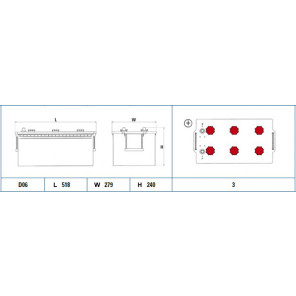 Spannung [V]: 12 | Batterie-Kapazität [Ah]: 225 | Höhe [mm]: 240 | Breite [mm]: 279 | Länge [mm]: 518 | Kälteprüfstrom EN [A]: 1150 | Batterie: erhöhte Zyklenfestigkeit | Bodenleistenausführung: B00 | Polanordnung: 3