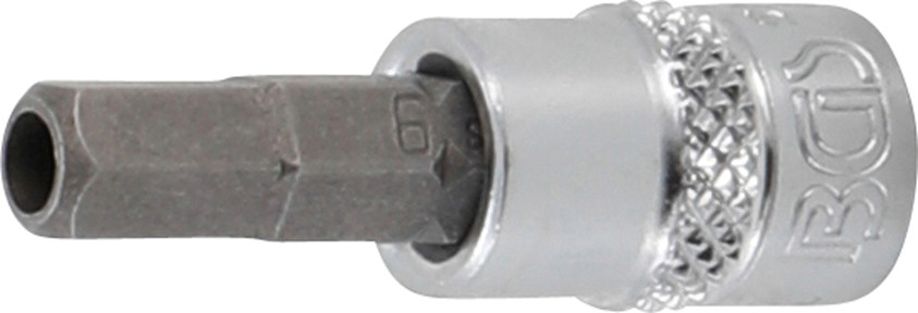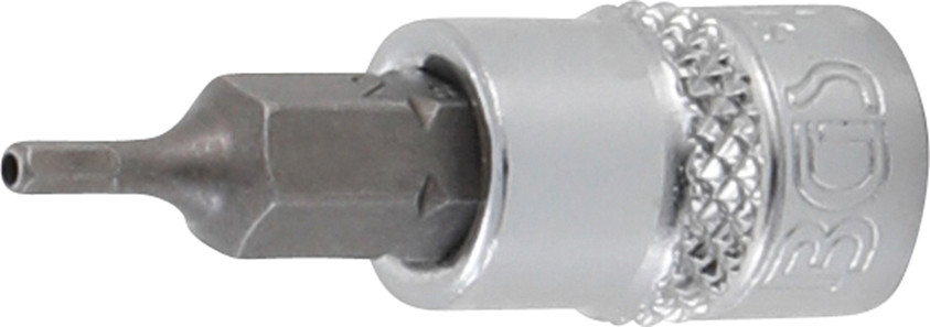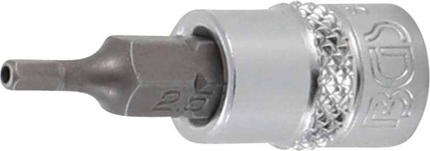 - 1 Bit-Einsatz, Länge: 38 mm, Antrieb Innenvierkant 6,3 mm (1/4"), Abtrieb Innensechskant mit Bohrung 2,5 mm