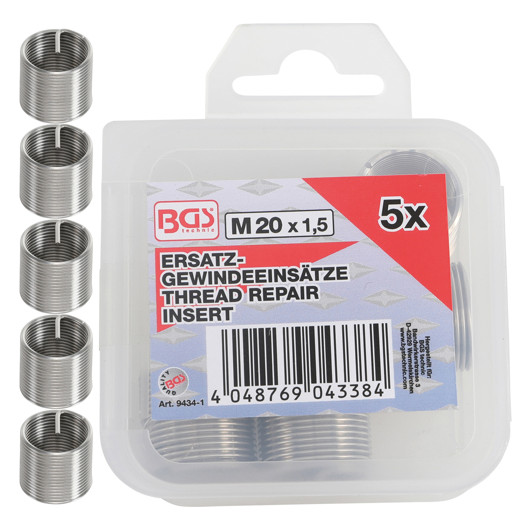 BGS 9434-1 Ersatz-Gewindeeinsätze | M20 x 1,5 mm | 5-tlg.