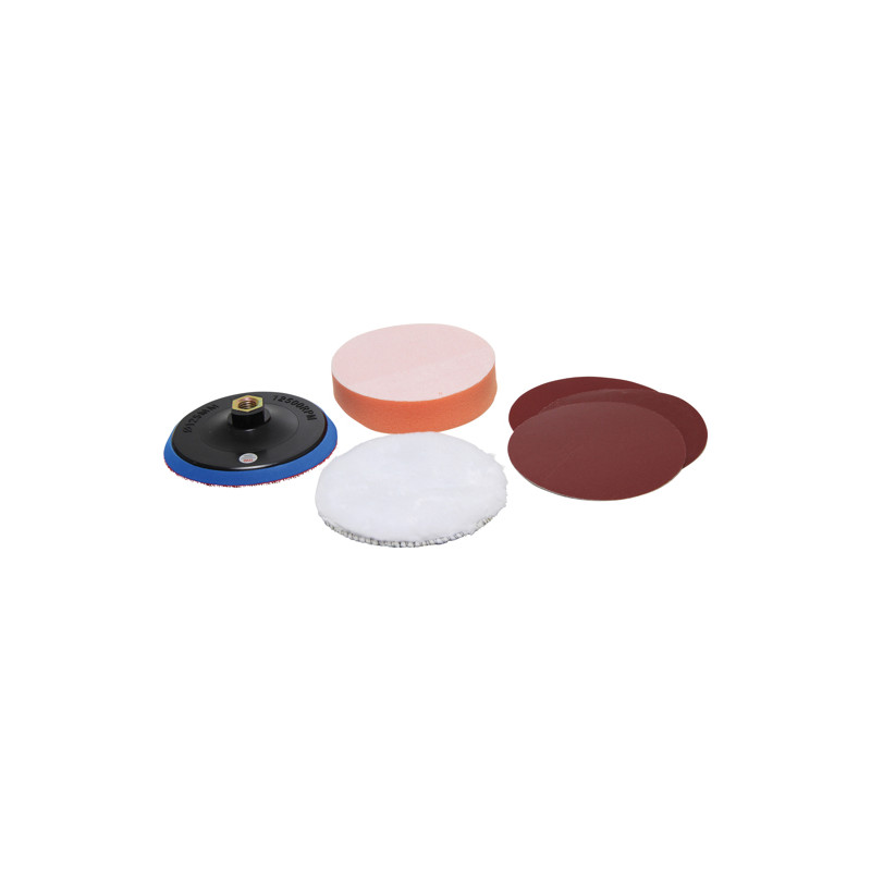 - beinhaltet Schaumstoffpad, Wollpad, Sandpapierpads (Aluminium-Oxid), Körnung 400-600-800