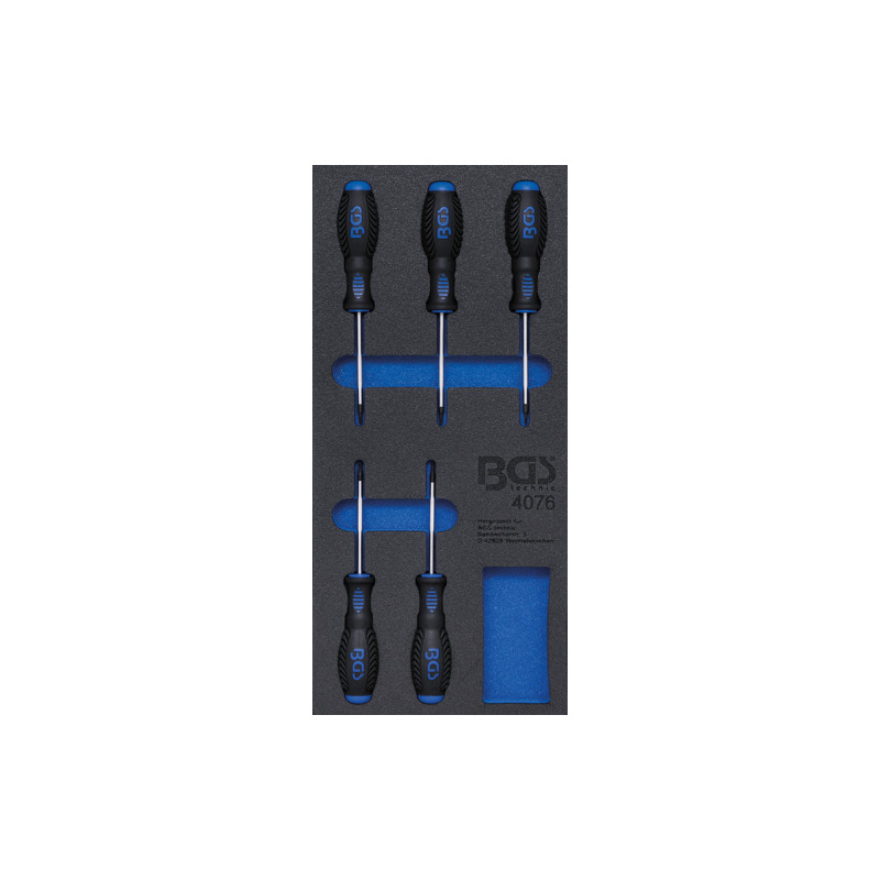 BGS 4076 Werkstattwageneinlage 1/3: Schraubendreher T-Profil (für Torx) | 5-tlg.