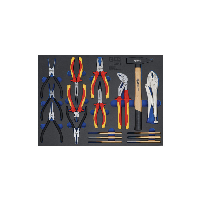 BGS 4011 Werkstattwageneinlage 3/3: Zangen-, Splintentreiber-Satz, Hammer | 17-tlg.