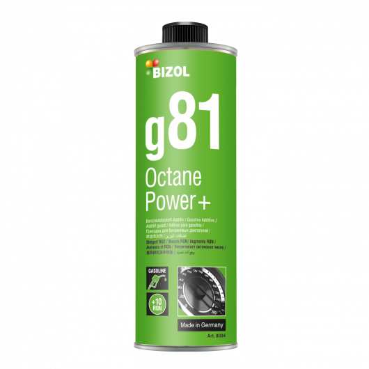 BIZOL Octane Power+ g81 erhöht die Oktanzahl (ROZ), um Motorschäden durch klopfende Verbrennung zu verhindern. Das BIZOL Octane Power+ g81 verbessert die Motorleistung insbesondere bei schlechter Kraftstoffqualität. Die Erhöhung der Oktanzahl sorgt für einen niedrigen Kraftstoffverbrauch. Die Verwendung dieses Produktes wird in der Regel von Automobilherstellern in Ländern empfohlen, in denen die Qualität des Kraftstoffs nicht wirksam kontrolliert wird.