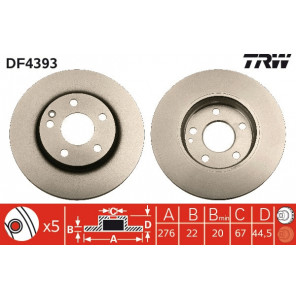 Gewindemaß: 15,3 | Bremsscheibenart: belüftet | Außendurchmesser [mm]: 276 | Bremsscheibendicke [mm]: 22 | Mindestdicke [mm]: 19,4 | Lochanzahl: 5 | Höhe [mm]: 44,5 | Zentrierungsdurchmesser [mm]: 67 | Lochkreis-Ø [mm]: 112 | Bearbeitung: hochgekohlt | Farbe: schwarz | Oberfläche: lackiert | Prüfzeichen: E190R-02C0176/0003