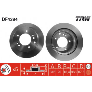 Oberfläche: lackiert | Mindestdicke [mm]: 18,4 | Bremsscheibenart: belüftet | Bremsscheibendicke [mm]: 20 | Außendurchmesser [mm]: 315 | Zentrierungsdurchmesser [mm]: 96,2 | Gewindemaß: 12,5 | Höhe [mm]: 87,5 | Lochkreis-Ø [mm]: 139,6 | Lochanzahl: 5 | Farbe: schwarz | Prüfzeichen: E1 90R-02 C0226/0611