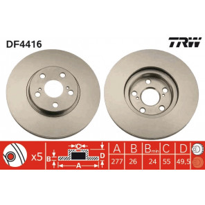 Mindestdicke [mm]: 24 | Bremsscheibenart: belüftet | Bremsscheibendicke [mm]: 26 | Außendurchmesser [mm]: 277 | Gewindemaß: 15 | Höhe [mm]: 49,5 | Zentrierungsdurchmesser [mm]: 55 | Lochkreis-Ø [mm]: 100 | Lochanzahl: 5 | Bearbeitung: hochgekohlt | Farbe: schwarz | Oberfläche: lackiert | Prüfzeichen: E190R-02C0176/0047