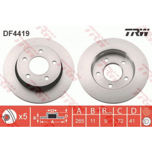 Gewindemaß: 13,8 | Mindestdicke [mm]: 9 | Höhe [mm]: 41 | Zentrierungsdurchmesser [mm]: 72 | Bremsscheibenart: voll | Bremsscheibendicke [mm]: 11 | Außendurchmesser [mm]: 265 | Lochkreis-Ø [mm]: 114,3 | Lochanzahl: 5 | Farbe: schwarz | Oberfläche: lackiert | Prüfzeichen: E190R-02C0190/0537