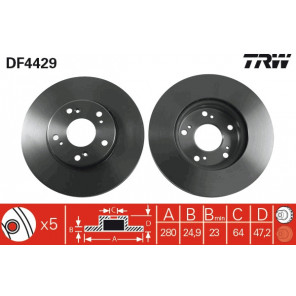 Höhe [mm]: 47,2 | Zentrierungsdurchmesser [mm]: 64 | Mindestdicke [mm]: 23 | Bremsscheibendicke [mm]: 25 | Außendurchmesser [mm]: 280 | Gewindemaß: 12,75 | Lochkreis-Ø [mm]: 114,3 | Lochanzahl: 5 | Bremsscheibenart: belüftet | Farbe: schwarz | Oberfläche: lackiert | Bearbeitung: hochgekohlt | Prüfzeichen: E190R-02C0176/0046