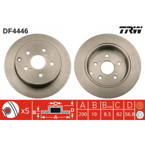 Zentrierungsdurchmesser [mm]: 62 | Bremsscheibendicke [mm]: 10 | Gewindemaß: 14,75 | Lochkreis-Ø [mm]: 114,3 | Bremsscheibenart: voll | Außendurchmesser [mm]: 290 | Lochanzahl: 5 | Höhe [mm]: 56,8 | Mindestdicke [mm]: 8,5 | Trommeldurchmesser: 180 | Farbe: schwarz | Oberfläche: lackiert | Prüfzeichen: E1 90R-02 C0204/0523