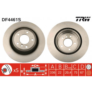 Höhe [mm]: 67 | Mindestdicke [mm]: 20,4 | Zentrierungsdurchmesser [mm]: 75 | Bremsscheibendicke [mm]: 22 | Außendurchmesser [mm]: 336 | Lochkreis-Ø [mm]: 120 | Lochanzahl: 5 | Gewindemaß: 14,8 | Bremsscheibenart: belüftet | Bearbeitung: hochgekohlt | Farbe: schwarz | Oberfläche: lackiert