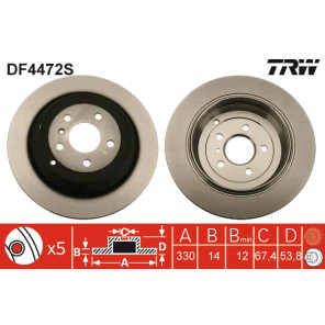 Gewindemaß: 15,3 | Höhe [mm]: 54 | Zentrierungsdurchmesser [mm]: 67 | Mindestdicke [mm]: 12 | Bremsscheibenart: voll | Bremsscheibendicke [mm]: 14 | Außendurchmesser [mm]: 330 | Lochkreis-Ø [mm]: 112 | Lochanzahl: 5 | Farbe: schwarz | Oberfläche: lackiert