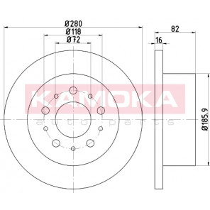 Einbauseite: Hinterachse | Bremsscheibenart: voll | Bremsscheibendicke [mm]: 16 | Lochkreis-Ø [mm]: 118 | Lochanzahl: 5 | Höhe [mm]: 80 | Zentrierungsdurchmesser [mm]: 72 | Oberfläche: beschichtet | Außendurchmesser [mm]: 280