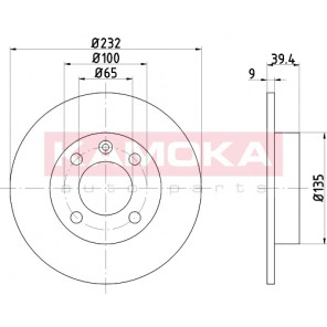Einbauseite: Hinterachse | Bremsscheibenart: voll | Bremsscheibendicke [mm]: 9 | Lochkreis-Ø [mm]: 100 | Lochanzahl: 4 | Höhe [mm]: 40 | Zentrierungsdurchmesser [mm]: 65 | Oberfläche: beschichtet | Außendurchmesser [mm]: 232