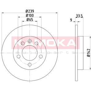 Einbauseite: Hinterachse | Bremsscheibenart: voll | Bremsscheibendicke [mm]: 9 | Lochkreis-Ø [mm]: 100 | Lochanzahl: 5 | Höhe [mm]: 33 | Zentrierungsdurchmesser [mm]: 65 | Oberfläche: beschichtet | Außendurchmesser [mm]: 239