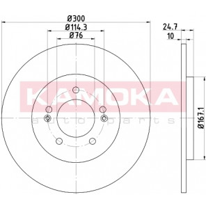 Einbauseite: Hinterachse | Bremsscheibenart: voll | Bremsscheibendicke [mm]: 10 | Lochkreis-Ø [mm]: 114 | Lochanzahl: 5 | Höhe [mm]: 25 | Zentrierungsdurchmesser [mm]: 76 | Oberfläche: beschichtet | Außendurchmesser [mm]: 300