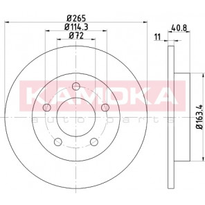 Einbauseite: Hinterachse | Bremsscheibenart: voll | Bremsscheibendicke [mm]: 11 | Lochkreis-Ø [mm]: 114 | Lochanzahl: 5 | Höhe [mm]: 41 | Zentrierungsdurchmesser [mm]: 72 | Oberfläche: beschichtet | Außendurchmesser [mm]: 265