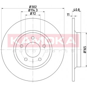 Einbauseite: Hinterachse | Bremsscheibenart: voll | Bremsscheibendicke [mm]: 11 | Lochkreis-Ø [mm]: 114 | Lochanzahl: 5 | Höhe [mm]: 41 | Zentrierungsdurchmesser [mm]: 72 | Oberfläche: beschichtet | Außendurchmesser [mm]: 302