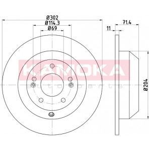 Einbauseite: Hinterachse | Bremsscheibenart: voll | Bremsscheibendicke [mm]: 11 | Lochkreis-Ø [mm]: 114 | Lochanzahl: 5 | Höhe [mm]: 72 | Zentrierungsdurchmesser [mm]: 69 | Oberfläche: beschichtet | Außendurchmesser [mm]: 302
