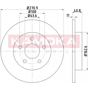 Einbauseite: Hinterachse | Bremsscheibenart: voll | Bremsscheibendicke [mm]: 11 | Lochkreis-Ø [mm]: 108 | Lochanzahl: 5 | Höhe [mm]: 41 | Zentrierungsdurchmesser [mm]: 63 | Oberfläche: beschichtet | Außendurchmesser [mm]: 271