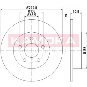 Einbauseite: Hinterachse | Bremsscheibenart: voll | Bremsscheibendicke [mm]: 11 | Lochkreis-Ø [mm]: 108 | Lochanzahl: 5 | Höhe [mm]: 51 | Zentrierungsdurchmesser [mm]: 63 | Oberfläche: beschichtet | Außendurchmesser [mm]: 280