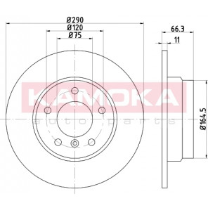 Einbauseite: Hinterachse | Bremsscheibenart: voll | Bremsscheibendicke [mm]: 11 | Lochkreis-Ø [mm]: 120 | Lochanzahl: 5 | Höhe [mm]: 66 | Zentrierungsdurchmesser [mm]: 75 | Oberfläche: beschichtet | Außendurchmesser [mm]: 290