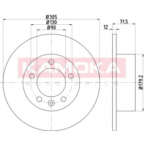 Einbauseite: Hinterachse | Bremsscheibenart: voll | Bremsscheibendicke [mm]: 12 | Lochkreis-Ø [mm]: 130 | Lochanzahl: 5 | Höhe [mm]: 71 | Zentrierungsdurchmesser [mm]: 90 | Oberfläche: beschichtet | Außendurchmesser [mm]: 305