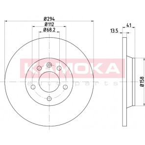 Einbauseite: Hinterachse | Bremsscheibenart: voll | Bremsscheibendicke [mm]: 14 | Lochkreis-Ø [mm]: 112 | Lochanzahl: 5 | Höhe [mm]: 41 | Zentrierungsdurchmesser [mm]: 68 | Oberfläche: beschichtet | Außendurchmesser [mm]: 294