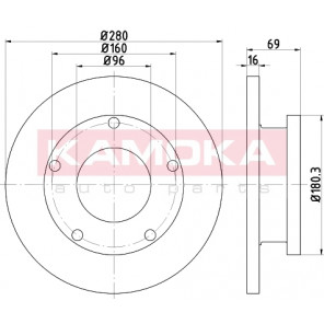 Einbauseite: Hinterachse | Bremsscheibenart: voll | Bremsscheibendicke [mm]: 16 | Lochkreis-Ø [mm]: 160 | Lochanzahl: 5 | Höhe [mm]: 69 | Zentrierungsdurchmesser [mm]: 96 | Oberfläche: beschichtet | Außendurchmesser [mm]: 280