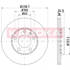 Einbauseite: Vorderachse | Bremsscheibenart: belüftet | Bremsscheibendicke [mm]: 18 | Lochkreis-Ø [mm]: 100 | Lochanzahl: 5 | Höhe [mm]: 35 | Zentrierungsdurchmesser [mm]: 65 | Oberfläche: beschichtet | Außendurchmesser [mm]: 239