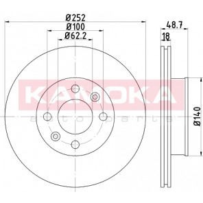 Einbauseite: Vorderachse | Bremsscheibenart: belüftet | Bremsscheibendicke [mm]: 18 | Lochkreis-Ø [mm]: 100 | Lochanzahl: 4 | Höhe [mm]: 49 | Zentrierungsdurchmesser [mm]: 62 | Oberfläche: beschichtet | Außendurchmesser [mm]: 252