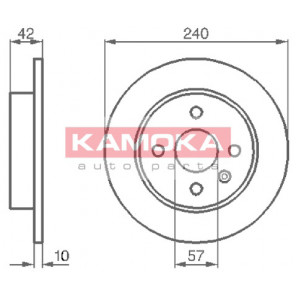 Einbauseite: Hinterachse | Bremsscheibenart: voll | Bremsscheibendicke [mm]: 10 | Lochkreis-Ø [mm]: 100 | Lochanzahl: 4 | Höhe [mm]: 42 | Zentrierungsdurchmesser [mm]: 57 | Oberfläche: beschichtet | Außendurchmesser [mm]: 240