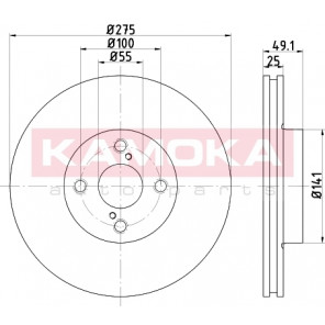 Einbauseite: Vorderachse | Bremsscheibenart: belüftet | Bremsscheibendicke [mm]: 25 | Lochkreis-Ø [mm]: 100 | Lochanzahl: 4 | Höhe [mm]: 49 | Zentrierungsdurchmesser [mm]: 55 | Oberfläche: beschichtet | Außendurchmesser [mm]: 275