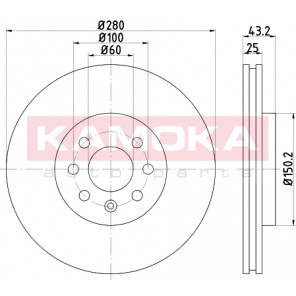 Einbauseite: Vorderachse | Bremsscheibenart: belüftet | Bremsscheibendicke [mm]: 25 | Lochkreis-Ø [mm]: 100 | Lochanzahl: 4 | Höhe [mm]: 43 | Zentrierungsdurchmesser [mm]: 60 | Oberfläche: beschichtet | Außendurchmesser [mm]: 280