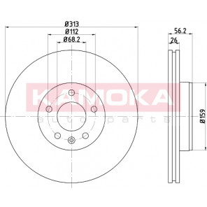 Einbauseite: Vorderachse | Bremsscheibenart: belüftet | Bremsscheibendicke [mm]: 26 | Lochkreis-Ø [mm]: 112 | Lochanzahl: 5 | Höhe [mm]: 56 | Zentrierungsdurchmesser [mm]: 68 | Oberfläche: beschichtet | Außendurchmesser [mm]: 313