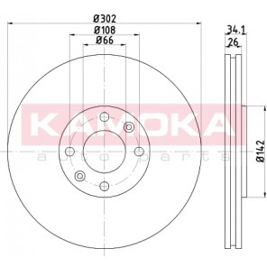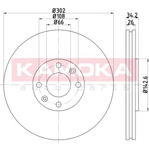 Einbauseite: Vorderachse | Bremsscheibenart: belüftet | Bremsscheibendicke [mm]: 26 | Lochkreis-Ø [mm]: 108 | Lochanzahl: 4 | für OE-Nummer: 1606308280 | Höhe [mm]: 34 | Zentrierungsdurchmesser [mm]: 66 | Oberfläche: beschichtet | Außendurchmesser [mm]: 302