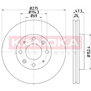 Einbauseite: Vorderachse | Bremsscheibenart: belüftet | Bremsscheibendicke [mm]: 26 | Lochkreis-Ø [mm]: 114 | Lochanzahl: 4 | Höhe [mm]: 47 | Zentrierungsdurchmesser [mm]: 69 | Oberfläche: beschichtet | Außendurchmesser [mm]: 275