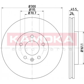 Einbauseite: Vorderachse | Bremsscheibenart: belüftet | Bremsscheibendicke [mm]: 26 | Lochkreis-Ø [mm]: 115 | Lochanzahl: 5 | Höhe [mm]: 46 | Zentrierungsdurchmesser [mm]: 70 | Oberfläche: beschichtet | Außendurchmesser [mm]: 300