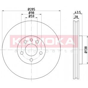 Einbauseite: Vorderachse | Bremsscheibenart: belüftet | Bremsscheibendicke [mm]: 28 | Lochkreis-Ø [mm]: 98 | Lochanzahl: 5 | Höhe [mm]: 44 | Zentrierungsdurchmesser [mm]: 59 | Oberfläche: beschichtet | Außendurchmesser [mm]: 285