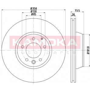 Einbauseite: Hinterachse | Bremsscheibenart: belüftet | Bremsscheibendicke [mm]: 28 | Lochkreis-Ø [mm]: 130 | Lochanzahl: 5 | Höhe [mm]: 74 | Zentrierungsdurchmesser [mm]: 85 | Oberfläche: beschichtet | Außendurchmesser [mm]: 358