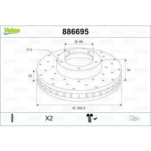 Einbauseite: Vorderachse | Bremsscheibenart: gelocht/innenbel. | Außendurchmesser [mm]: 266 | Bremsscheibendicke [mm]: 22 | Zentrierungsdurchmesser [mm]: 66 | Höhe [mm]: 34 | Mindestdicke [mm]: 20 | Felge Lochzahl: 4 | Anzahl der Befestigungsbohrungen: 2 | Ergänzungsartikel/Ergänzende Info 2: mit Schraube | Gewicht[kg]: 10,6