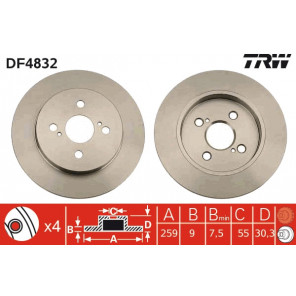 Bremsscheibenart: voll | Außendurchmesser [mm]: 259 | Bremsscheibendicke [mm]: 9 | Mindestdicke [mm]: 7,5 | Lochanzahl: 4 | Zentrierungsdurchmesser [mm]: 55 | Lochkreis-Ø [mm]: 100 | Höhe [mm]: 30,3 | Gewindemaß: 14,5 | Farbe: schwarz | Oberfläche: lackiert | Prüfzeichen: E190R-02C0190/0311