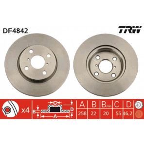 Bremsscheibenart: belüftet | Außendurchmesser [mm]: 258 | Bremsscheibendicke [mm]: 22 | Mindestdicke [mm]: 20 | Lochanzahl: 4 | Höhe [mm]: 46,2 | Zentrierungsdurchmesser [mm]: 55 | Lochkreis-Ø [mm]: 100 | Gewindemaß: 14,5 | Farbe: schwarz | Oberfläche: lackiert | Prüfzeichen: E190R-02C0176/0529