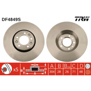 Gewindemaß: 13,2 | Außendurchmesser [mm]: 304 | Bremsscheibendicke [mm]: 28 | Mindestdicke [mm]: 26 | Höhe [mm]: 48 | Lochanzahl: 5 | Zentrierungsdurchmesser [mm]: 71 | Lochkreis-Ø [mm]: 108 | Bremsscheibenart: belüftet | Farbe: schwarz | Oberfläche: lackiert | Prüfzeichen: E190R-02C0185/0553