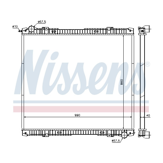Kühlrippenmaterial: Aluminium | Netztiefe [mm]: 40 | Netzlänge [mm]: 860 | Netzbreite [mm]: 990 | Einlass-Ø [mm]: 57,5 | Auslass-Ø [mm]: 57,5 | Kühlerausführung: Kühlrippen gelötet | Ergänzungsartikel/Ergänzende Info 2: ohne Verschlussdeckel, ohne Ausgleichsbehälter | Ergänzungsartikel/Ergänzende Info: mit Dichtungen | Material Wasserkasten (Kühler): Kunststoff