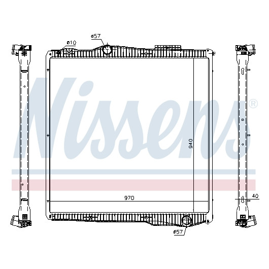 Kühlrippenmaterial: Aluminium | Netztiefe [mm]: 40 | Netzlänge [mm]: 940 | Netzbreite [mm]: 970 | Einlass-Ø [mm]: 57 | Auslass-Ø [mm]: 57 | Kühlerausführung: Kühlrippen gelötet | Ergänzungsartikel/Ergänzende Info 2: ohne Verschlussdeckel, ohne Ausgleichsbehälter, mit Rahmen | Ergänzungsartikel/Ergänzende Info: ohne Dichtung | Material Wasserkasten (Kühler): Kunststoff