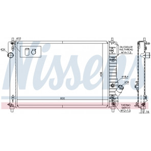 Kühlrippenmaterial: Aluminium | Netztiefe [mm]: 16 | Netzlänge [mm]: 600 | Netzbreite [mm]: 418 | Einlass-Ø [mm]: 34 | Auslass-Ø [mm]: 34 | Kühlerausführung: Kühlrippen gelötet | Ergänzungsartikel/Ergänzende Info 2: ohne Ausgleichsbehälter, mit Thermostat | Ergänzungsartikel/Ergänzende Info: mit Ölkühler, mit Dichtungen | Material Wasserkasten (Kühler): Kunststoff