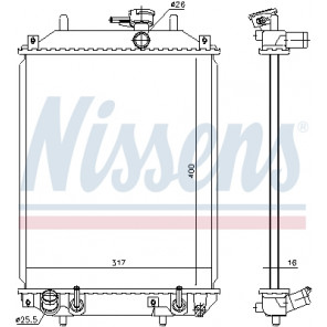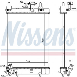 Kühlrippenmaterial: Aluminium | Netztiefe [mm]: 16 | Netzlänge [mm]: 400 | Netzbreite [mm]: 298 | Einlass-Ø [mm]: 25 | Auslass-Ø [mm]: 25 | Kühlerausführung: Kühlrippen gelötet | Ergänzungsartikel/Ergänzende Info 2: ohne Ausgleichsbehälter | Ergänzungsartikel/Ergänzende Info: ohne Dichtung | Material Wasserkasten (Kühler): Kunststoff