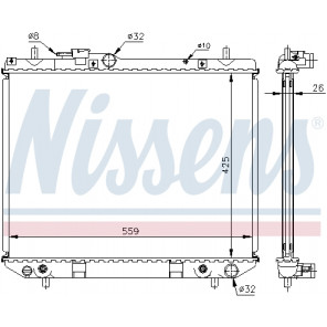 Kühlrippenmaterial: Aluminium | Netztiefe [mm]: 26 | Netzlänge [mm]: 425 | Netzbreite [mm]: 558 | Einlass-Ø [mm]: 32 | Auslass-Ø [mm]: 32 | Kühlerausführung: Kühlrippen gelötet | Ergänzungsartikel/Ergänzende Info 2: ohne Ausgleichsbehälter | Ergänzungsartikel/Ergänzende Info: ohne Dichtung | Material Wasserkasten (Kühler): Kunststoff