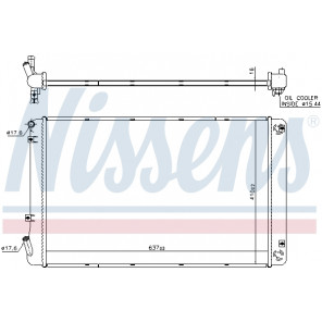 Kühlrippenmaterial: Aluminium | Netztiefe [mm]: 16 | Netzlänge [mm]: 635 | Netzbreite [mm]: 467 | Einlass-Ø [mm]: 35 | Auslass-Ø [mm]: 35 | Kühlerausführung: Kühlrippen gelötet | Ergänzungsartikel/Ergänzende Info 2: ohne Ausgleichsbehälter | Ergänzungsartikel/Ergänzende Info: mit Ölkühler, ohne Dichtung | Material Wasserkasten (Kühler): Kunststoff